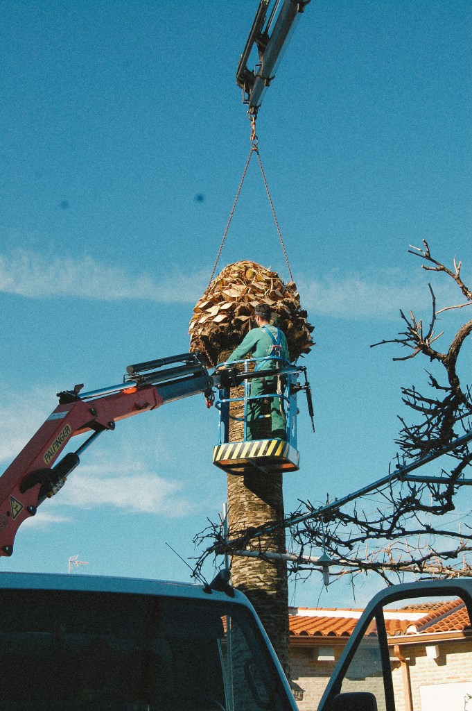 Podas con camion grua y de escalada.